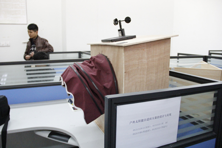 宣讲会现场,2015年项目组成员分工合作,借助多媒体及项目成品对研究成果进行讲解,并就项目选题、团队搭建、任务分工等结合自身经历,与在场学生分享宝贵经验。分享过程中,“智能声控饮料机”“户外太阳能自适应天幕”等实体作品的精彩展示,让在场学生赞叹不已。