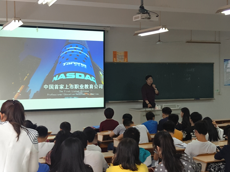 其次是达内,刚开始的支付宝口令红包环节激发大家的兴趣,主讲人以风趣幽默的语言和轻松的演讲氛围活跃气氛,体现该公司寓教于乐的理念,并且共同观看视频“达内的一天”让同学们更直观清晰的感受在达内实训的切身体会。
