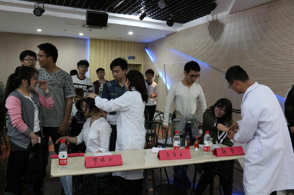 本次活动由“宣讲中医药文化”、“bingo答题”、“百辨药材”、“体验环节”等组成。在“宣讲中医药文化”中,南京中医药大学农民健康百村工程村长周丹丹亲自为我们讲解了中医的起源与发展以及几种大学生常见的健康问题,从而呼吁同学们关注身体健康,远离低头族,过优质生活。紧接着,进行的“bingo答题”和“百辨药材”环节也是妙趣横生,跌宕起伏的赛况让同学们禁不住拍手叫好。最后压轴的体验环节更是引起了同学们潮水般的热情。刮痧示范,搭脉问诊,拔火罐,推拿按摩,测量血压,每个项目都排起了长队,赢得大家的追捧,深得观众的喜爱。就在在大家忙于体验项目,时间悄悄流逝,活动接近尾声,大家热情却不减分毫,整个体验环节比意料之中延时了半个小时,本次活动在大家的恋恋不舍中圆满完成。