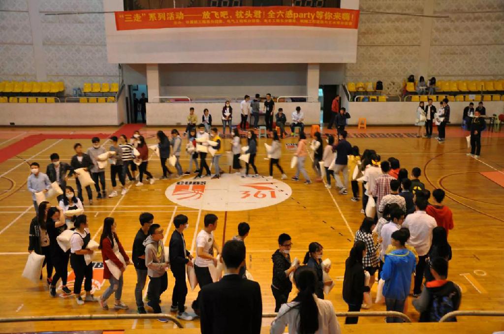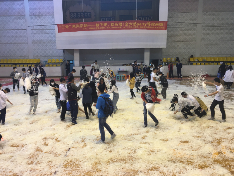 2016年5月8号下午3:00,由bt.bt365计算机工程系,电子工程系,电气工程系,机械工程、建筑与艺术系,四系分团委联合举办的三走活动之“放飞吧,枕头君”在后藤体育馆成功举办。