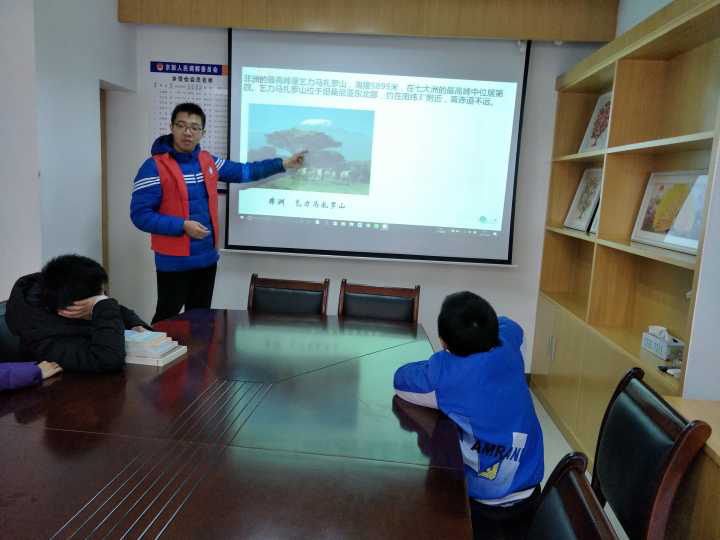 会议室,那一个狭小但可以学习的地方,它把小朋友吸引到了这里。让我们相互熟悉彼此,倾听着耳旁的笑语。小朋友都说着寒假去哪了,去旅游了。地球之大,它有着许多美好的风景,高山、大海、平原数不胜数。看见小朋友微笑的面容,志愿者已经等不及为他们讲解地球母亲了。在课本中,还描绘着七大洲、四大洋的版图。小朋友都争吵回答这些问题,志愿者耐心的为他们解答这些疑问,还说着海洋生物。一眨眼,冬天逝去,春天来了,夏天将至,四季变化,奇妙无穷,也许这就是地球的自然规则吧。地球围着我们转,所以我们身边都是风景,都是知识。窗外阳光明媚,屋内欢声笑语,让我们记住这一美好时刻。