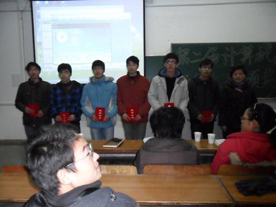 2010年12月30日下午,计算机工程系“第二届程序设计大赛”汇报演示暨颁奖仪式在成贤院217教室举行。参加典礼的有学院教学部部长冀京红、计算机工程系电气工程系党总支书记周曼云、系学办副主任颜秉明、系分团委书记王仁芳及计算机系的辅导员。会议由08级计算机系辅导员房振伟老师主持。