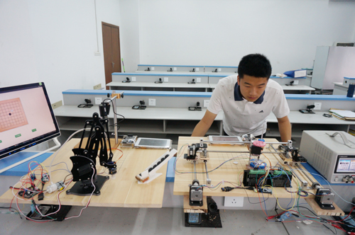 作为人才培养的重要环节,该院一贯重视培养学生的创新实践能力,积极组织各类创新实践活动。在115名学生参与的32个大创项目中,电子实物类23项,程序设计及计算机思维研究类7项,社会调查类2项,为抓紧进度,提高项目的完成率,学院每月组织专家组开展为期5天的月度检查,确保项目的进度和质量,最终项目全部实现预期成果,发表论文29篇,并有2项正在申报实用新型专利。同时学院积极将项目向纵深拓展,鼓励成员将智能车、电子作品、程序设计作品向竞赛项目延伸,积极组织参加全国自动化大赛、蓝桥杯全国软件设计大赛、“挑战杯”江苏省大学生课外学术科技作品竞赛、飞思卡尔智能车华东区大赛、江苏省电子设计大赛、江苏省机器人大赛等学科竞赛。2016年江苏省教育厅主办的“大学生优秀创新创业项目展示会”,学院徐叶菡等同学完成的“智能可穿戴设备”项目成功入选,并得到与会专家和参展同行的一致好评,学校被组委会评为“优秀组织奖”,将我校的创新创业教育推上了一个新的平台,在今年的考研中该项目组成员因项目研究、学科竞赛优势突出,2名同学被东南大学录取,1名同学被南京邮电大学录取。
