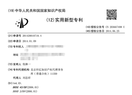 去年,倪淋一同学获得了国家发明专利“一种传送带清洗装置”(专利号201310291038.4)和国家实用新型专利“一种清洗设备的PLC组合控制电路”(专利号201320253310.5)的授权。但他没有在已获得的成就上沾沾自喜,而是再接再厉,利用空余时间以及寒假的实习机会,在原有的专利基础上再次改进,最终成功申请专利“复杂表面形状传送带的清洗装置”。紧接着,他又马不停蹄地投入到了实习岗位上的另一个科研项目中,得益于扎实的理论基础与丰富的实践操作经验,他很快取得了技术上的突破,在今年年初成功申请了专利“清洗设备物料篮检测装置”,并随后在省级期刊《机电信息》上发表论文《酸碱液内物料篮检测装置的开发应用》(2014年第18期)。至此,倪淋一在大学三年期间已获得4项国家专利。