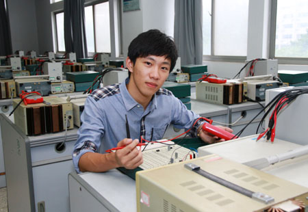 倪淋一在学好专业知识的同时,不断尝试将所学知识应用到实际工作中。利用假期在企业实习的机会,针对企业传送带人工清洗耗时费力的情况,他提出传送带自动清洗方案,并与企业工程师共同钻研,最终完成了“一种传送带清洗装置”的设计和开发。新装置清洗效率高,效果好。同时,他还发现多槽式清洗设备的自动控制系统需要用一大一小两套PLC控制,成本过高,提出创新PLC组合控制电路,通过PLC程序,发明了“一种清洗设备的PLC组合控制电路”,只用了两套小型PLC就实现原来的功能,成本节约了40%。