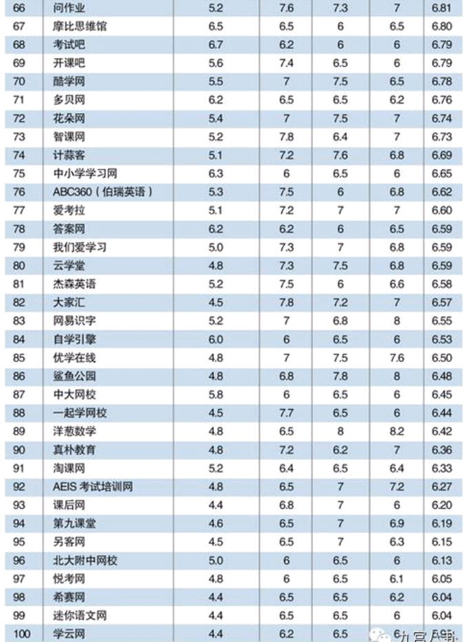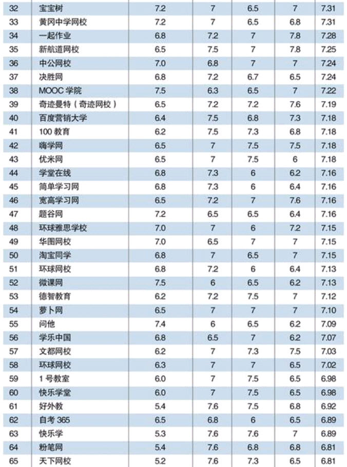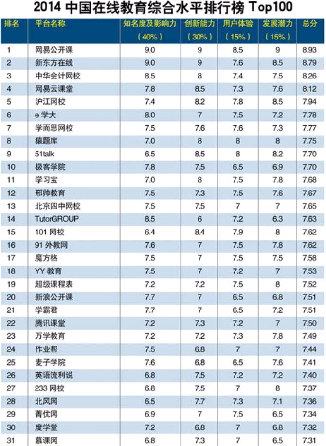 在线教育综合水平排行榜发布
